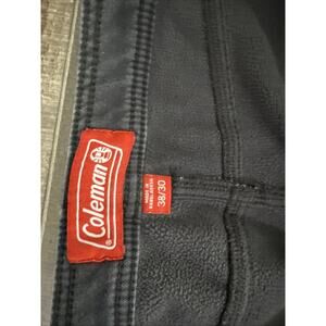 These Coleman pants are designed for outdoor activities during the winter season. Made of a gray canvas fabric with a fleece lining, they offer warmth and comfort in cold weather. The pants have a relaxed fit with a high rise and a straight leg style, featuring a button closure and a flat front. With a waist size of 38 inches and inseam of 30 inches, they are suitable for casual or workwear occasions. The stretch material provides flexibility, making them ideal for outdoor adventures in chilly conditions.