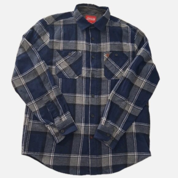 Coleman Shirt Mens Large Plaid Flannel Blue Gray Button Up Outdoor Workwear.