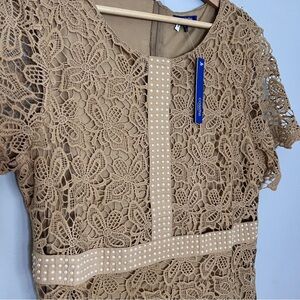 Colette Collection Floral Lace Tan Sheath Dress for Wedding Guest Size XXL NWT