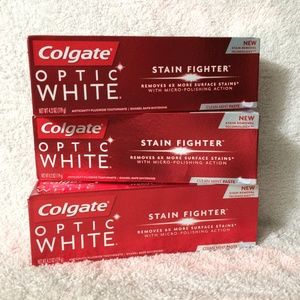 You will receive three New, Unopened 4.2 oz tubes of Colgate Optic White Stain Fighter Toothpaste in the Clean Mint Flavor.