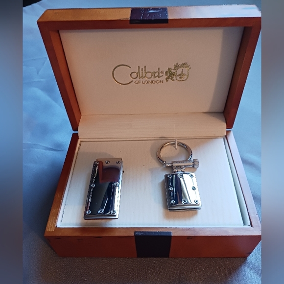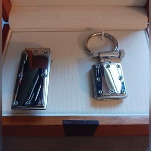 Keychain and money clip in wooden box