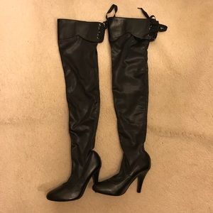 NWT - Victoria’s Secret Over the Knee Back Lace Up Stretch Boots by Colin Stuart.