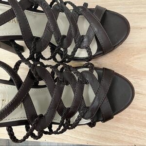 Colin Stuart Brown Leather Braided Strappy Platform Heeled Sandal