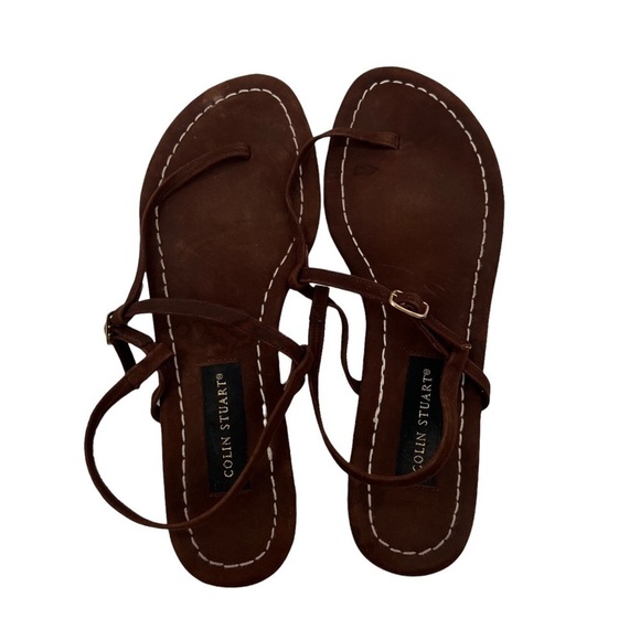 Colin Stuart Brown Suede T-Strap Flat Sandals Size 8 1/2 Women’s