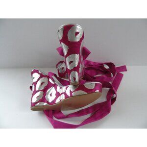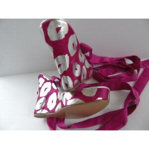 Colin Stuart Pink Silver Platform Shoes Strappy Fabric Kisses Size 5 1/2 M