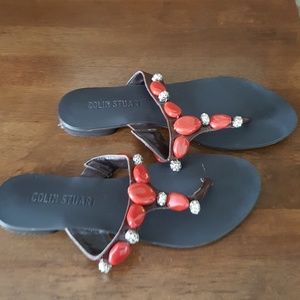 Colin Stuart flat sandals brown with coral stones and silver beads