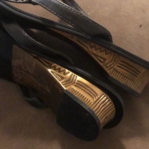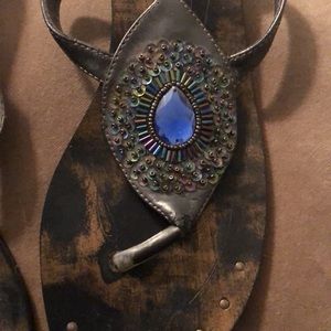 Colin Stuart embellished sandals. Black, gold, blue stone. Gently worn. Size 10