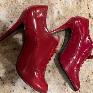 Colin Stuart Stiletto 4" lace up heels-worn once inside for a photo shoot--size 9 Beautiful, stylish-great red/burgundy shiny peep toe heels Ready for glamor!