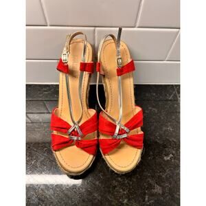 Colin Stuart Suede Espadrille Heel Wedges Sandals Bohemian Tomato Beige SZ 7.5B