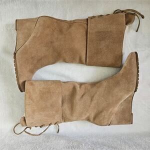 Colin Stuart Wedge Boots Womens Size 8 Tan Suede Lace-Up Warm