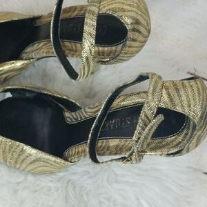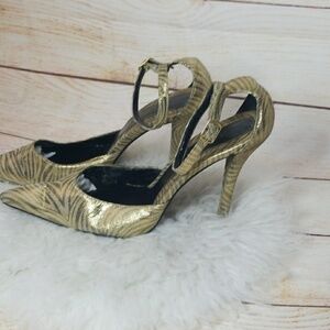 Size 9.5 These are super elegant normal used condition except the inside of the shoes has started to peel off on inside can't see while wearing doesn't affect the shoe but wanted to mention 4" heel #1-c