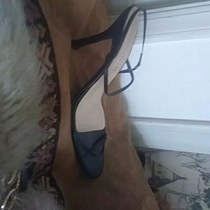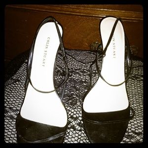 Colin Stuart black and nude patent leather strapy sandal high heel