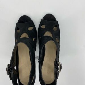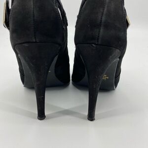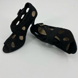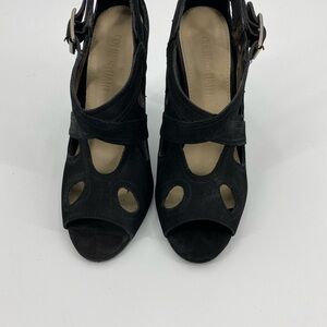 Colin Stuart black suede peep toe heels 7