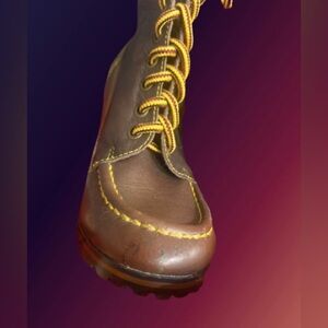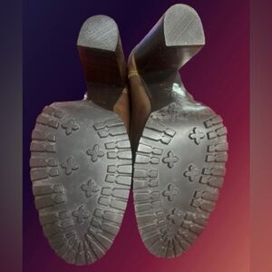 These are pair of gently pre-owned Colin Stuart ankle boots in a “utility”style. Genuine leather uppers with a 3.75” stacked heel. Please see photos for any imperfections.