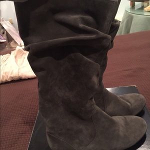 Colin Stuart scrunch boots...mid-upper calf in height (I'm 5'6") kept in box. Worn once, great shape some wear on soles. Color is dusty eggplant but are really dark grey.