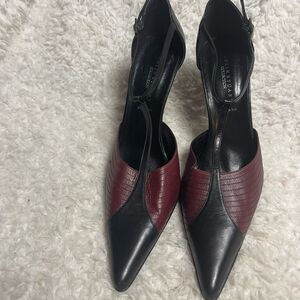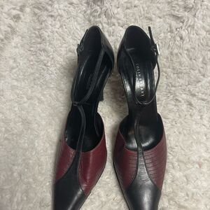Colin Stuart leather Black and Burgundy T strap heels pointed toe SZ10B .Pre owned in good used condition signs of wear on the outer soles.see all pictures any questions please message. M9
