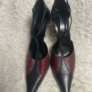 Colin Stuart leather Black and Burgundy T strap heels pointed toe SZ10B