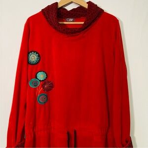 Coline Fine Velvet Dress XXL Red Embroidered Bohemian Draped Neckline Feminine