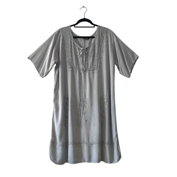 Coline Floral Embroidered Dress Gray Viscose Rayon Size 3XL Boho Short Sleeve