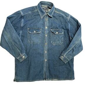 Coliseum Mens Large Denim Shirt with Blue and White Flannel Lining 100% Cotton