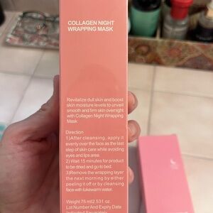 Set of two pink korean collagen night wrapping masks. Perfect for skincare routine. Never used. Unopened. The plastic cellophane has been removed from one of the boxes. Listing is for both boxes.