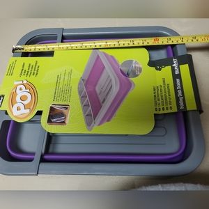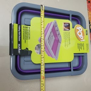Brand new. I live alone so would have been perfect for me, however I have oversized dishes that were too large for this dish rack. Measurements in pictures. Silicone and plastic material. Lightweight and easy to store.