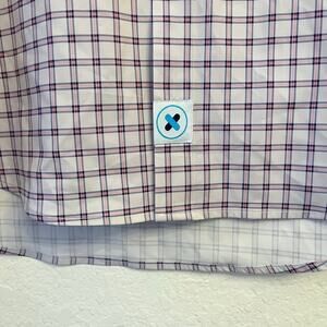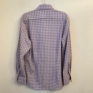 &Collar Button Up Mens Large Range Shirt Slim Plaid Purple White Long Sleeve NEW