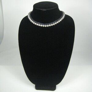 Collar Necklace 15 inch Silvertone Jewelry Women Gray Faux Pearl Classic Choker