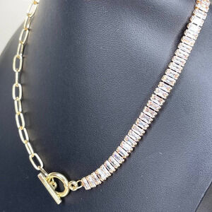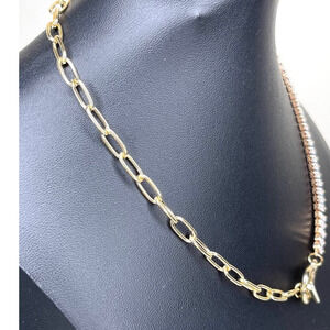Collar Necklace 16” Paperclip Chain Gold Clear C Z O26