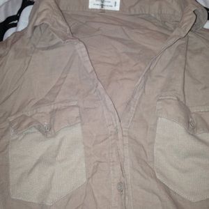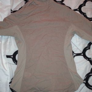 Tan, "professional" collard shirt. Stretchy sides. Says large but I recommend x-small or smalls for this shirt. Really cute. Never worn. Will iron if purchased.
