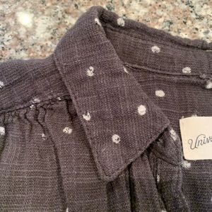 Here- we have a grey collard button up women’s short sleeve shirt. Worn a handful of times!
