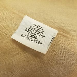 Collared button front shirt dress. Silk cotton blend. Fully lined. Cuffed short sleeves. Matching fabric belt. Falls slightly above knee.