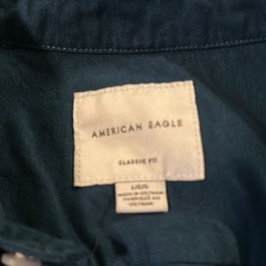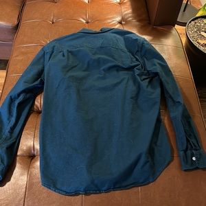 Excellent condition! Only worn a few times. Size is large, classic fit. Material is 100% cotton. Color is dark blue/green