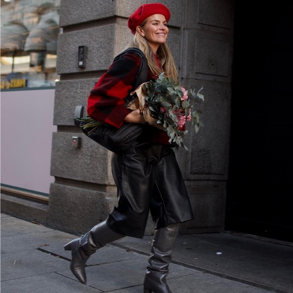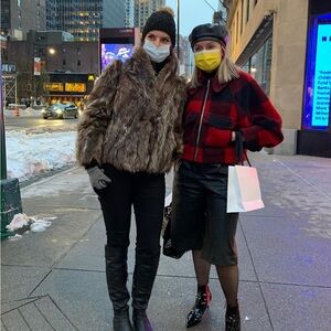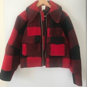 Red and black collared jacket, very stylish, light yet warm, very comfy as well! Good condition!
