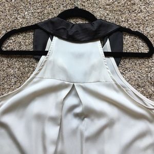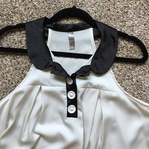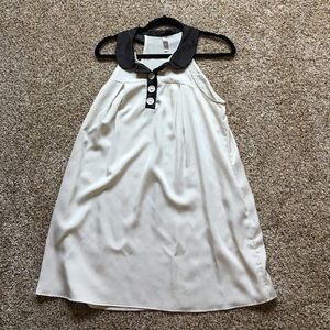 Silky off-white shift dress with black collar and cream buttons. Very flowy and comfortable.