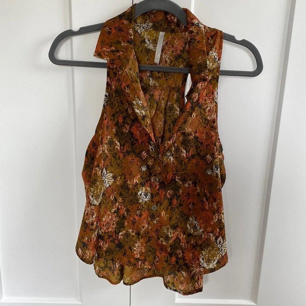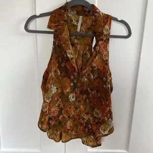 ModCloth collared racerback button down top in orange and brown