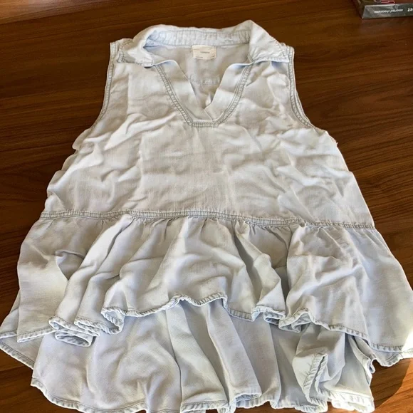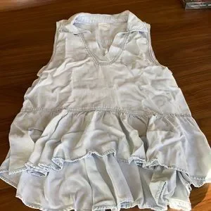Super cute (just wrinkly) chambray tank top. ADORABLE with highwasited shorts or jeans. Higher in front than in back. From Francesca’s.