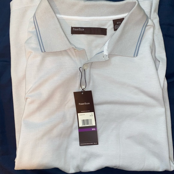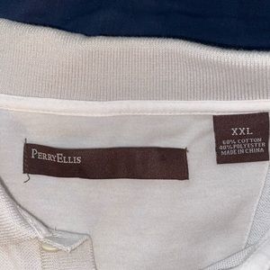 Perry Ellis, XXL (Fits like large & loose), white w/ blue details on the collar. Great condition