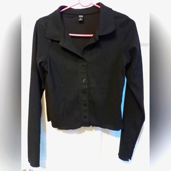 Casual long sleeve collard shirt in black. Crop style waist. NWOT