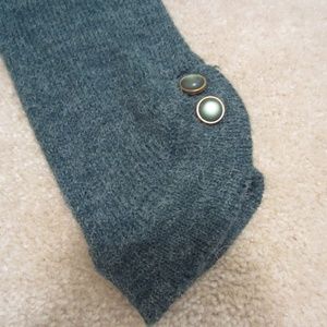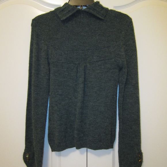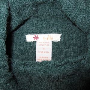 Collared long sleeve sweater by Tulle. Size small. Forrest Green Heather color. Button accents on sleeves. Very good condition. 23" long. 80% Acrylic and 20% Nylon.