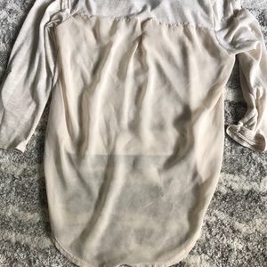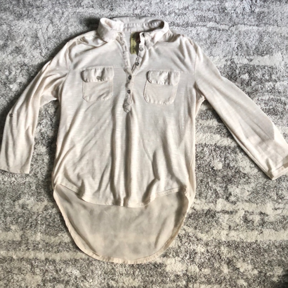 Button for 3/4 sleeve attachment, collar top, sheet back, high low style
