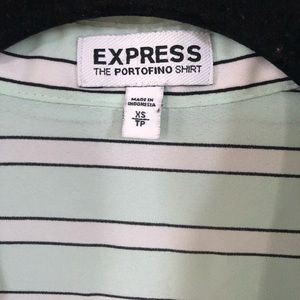 Collared blouse, buttons down the front , green and white striped