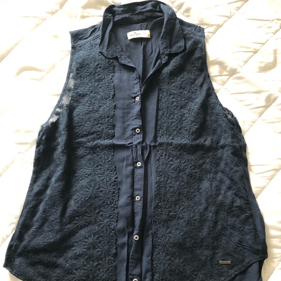 Collared button down blouse with a lace overlay on the front from Hollister. Worn a few times. From a smoke free home.