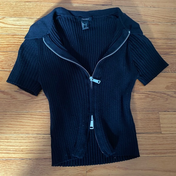 Black zip up top, streachy knit material, so cute and perfect for the fall, worn once, no flaws