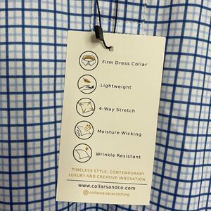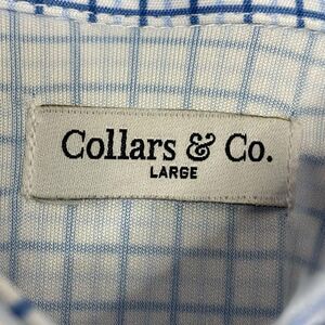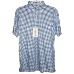 Collars & Co Polo Shirt Mens Large Blue Tattersall Golf Preppy Stretch Dress NWT