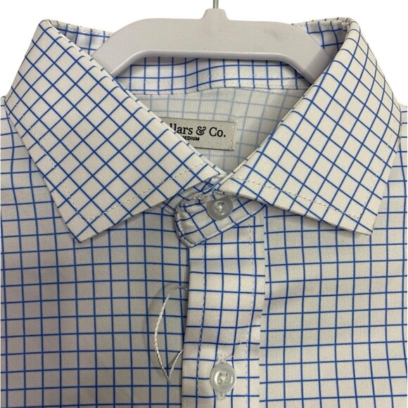 Collars & Co Polo Shirt Mens M Blue White Check Semi Spread Dress Collar NEW