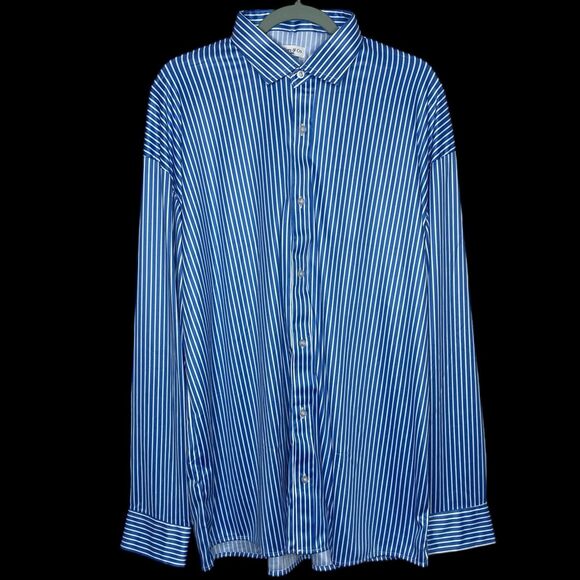 Collars & Co Shirt Mens 2XL Blue White Button Up Stripe Dress Collar Polo NEW