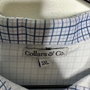 Collars and Co Mens 3XL Dress Collar Polo Golf Shirt Blue Checkered Short Sleeve