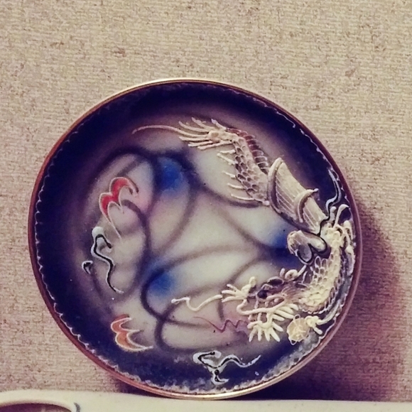 set of two vintage hand painted gold rimmed dragon collectable plates