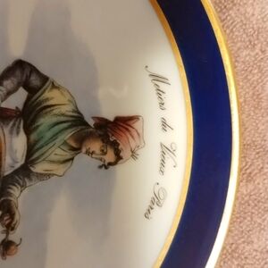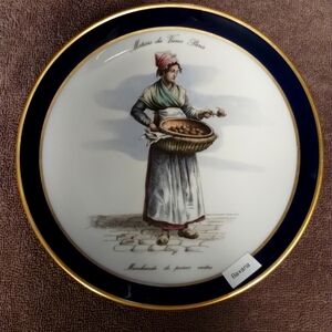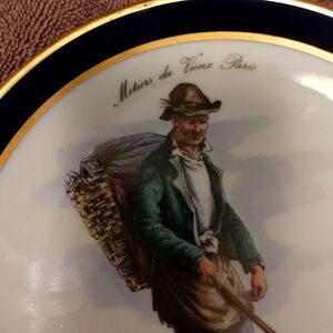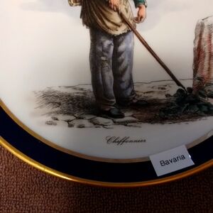 Echt Cobalt Bavaria Schumann Arzberg Golden Crown collectors plates. The man: Trades of Old Paris and Chiffonnier. The woman: Trades of Old Paris; seller of cooked pears.